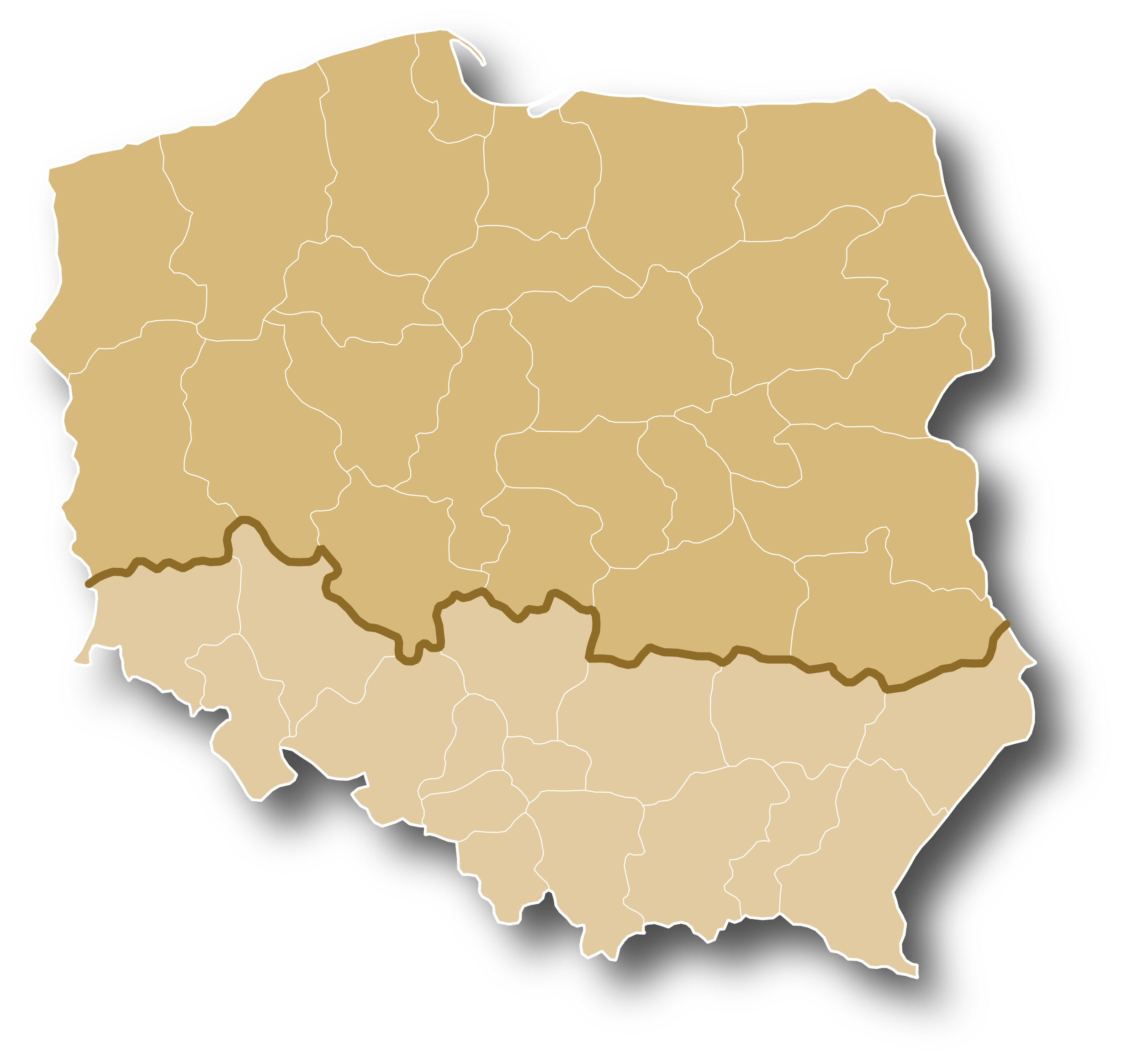 Prowincja Wielkopolsko-Mazowiecka na mapach zaznaczona jest ciemniejszym kolorem. Od 1926 r. podział terytorialny kraju pomiędzy obiema prowincjami zakonnymi jezuitów został oparty o podział administracyjny kościoła na diecezje.